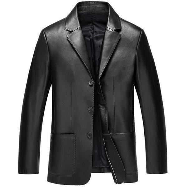เสื้อแจ็คเก็ตหนังแกะคอปก 【นักธุรกิจชาย】